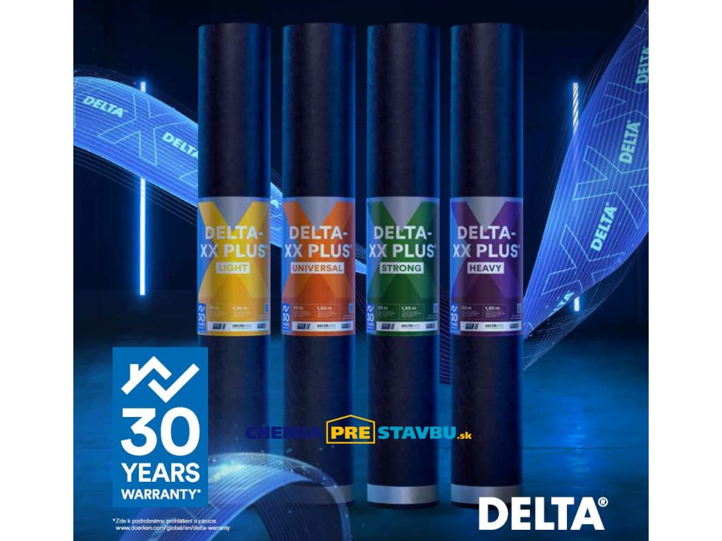 DELTA-XX PLUS® UNIVERSAL presvedčí overenú dlhou životnosťou, je dlhodobo funkčný a spoľahlivo chráni. To potvrdili extrémne testy kvality a životnosti a úspešné získanie certifikátu ETA. S fóliou DELTA-XX PLUS® UNIVERSAL sú šikmé strechy spoľahlivo chránené na dlhé roky. - 30-ročná záruka