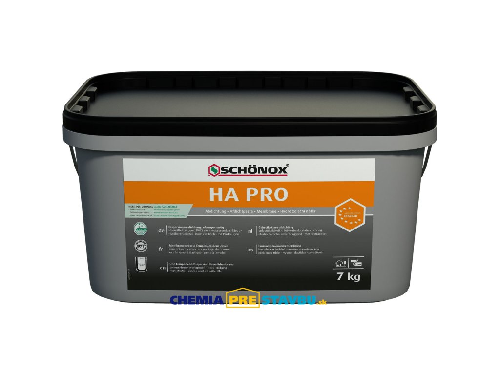 Schönox HA PRO je jednozložková hydroizolačná stierka pripravená k okamžitému použitiu pre prípravu vodotesných hydroizolačných hmôt pod dlaždice v mokrých priestoroch. Na vnútorné použitie. Je možné ju použiť v priestoroch, na ktoré sa vzťahujú triedy vlhkostného zaťaženia I a II. Spĺňa požiadavky nemeckých dozorových orgánov pre budovy triedy A podľa stavebných predpisov WTB č. C 3.27. V súlade s certifikáciou ETA/EAD.