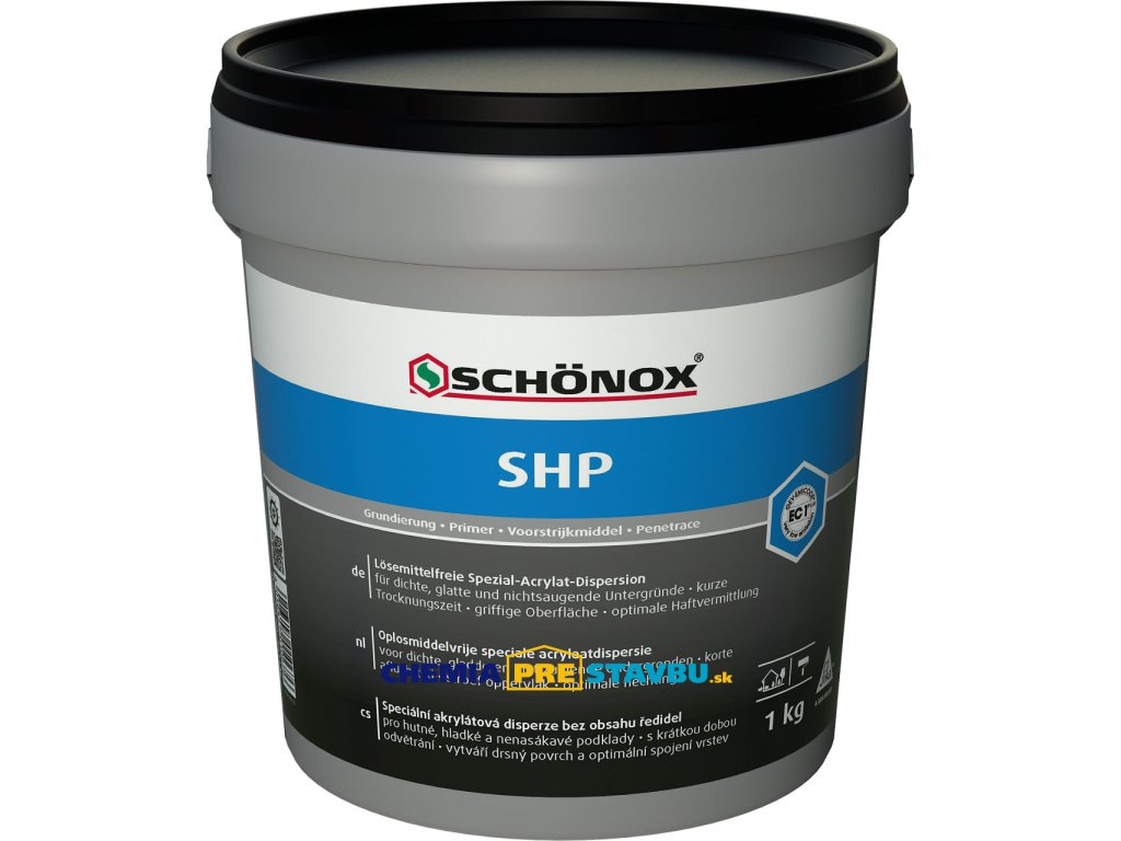 Schönox SHP je špeciálna jednozložková akrylátová disperzia bez obsahu rozpúšťadiel. Penetrácia pre neporušené, hladké a nenasiakavé podklady. Zvlášť vhodná pre pokládku na staré vinylové, linoleové a gumové krytiny.