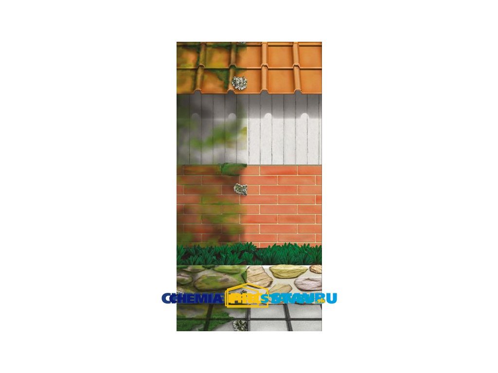 Na úplné odstránenie machov, lišajníkov a iných znečistení na bežných podkladoch v interiéroch aj exteriéroch (markízy, strešné konštrukcie, odkvapové žľaby, terasy,balkóny, steny, rámy plastových a drevených okien) ako aj na náhrobných kameňoch, sochách a pod.