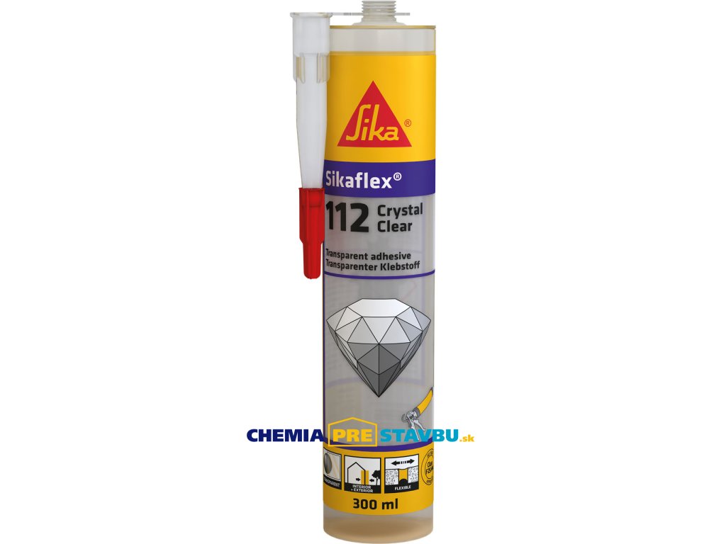 Sikaflex 112 Crystal Clear je 1-komponentný, viacúčelové lepidlo a tmel, 100% transparentný bez obsahu rozpúšťadiel s dobrou začiatočnou prídržnosťou, na väčšinu stavebných materiálov, do interiéru aj exteriéru.